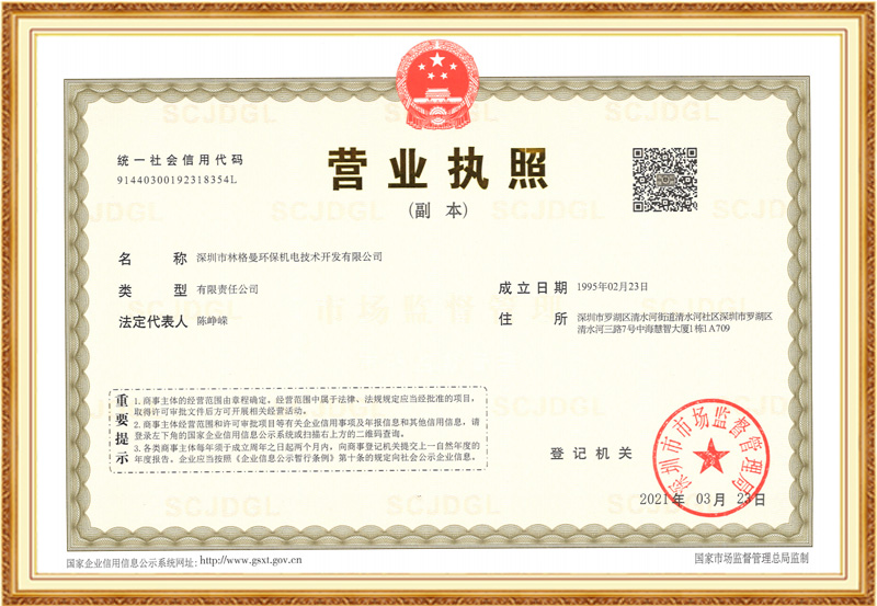深圳市林格曼環保機電技術開發有限公司于一九九五年二月組建成立 ,經深圳市環境保護局正式資格認證的環保工程技術及具有國家知識產權局頒發國家專利證書的企業。